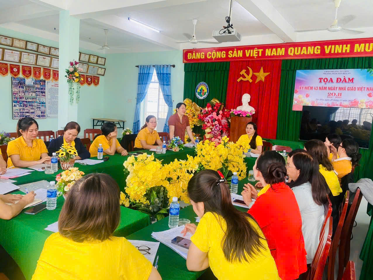 CHI BỘ TRƯỜNG MẦM NON HÒA AN TỔ CHỨC KIỂM ĐIỂM, ĐÁNH GIÁ ĐẢNG VIÊN Sáng ngày 12/12/2025, Chi bộ Trường Mầm non Hòa An đã tổ chức hội nghị kiểm điểm, đánh giá chất lượng đảng viên năm 2025 theo kế hoạch của Đảng ủy phường Tuy Hòa. Tham dự và chỉ đạo hội nghị có đồng chí Phạm Thị Thanh Hương – Đảng ủy viên, Phó Trưởng ban Văn hóa – Xã hội HĐND phường Tuy Hòa, cùng toàn thể đảng viên trong Chi bộ nhà trường. Tại hội nghị, các đảng viên đã tiến hành kiểm điểm, tự phê bình và phê bình một cách nghiêm túc, thẳng thắn, đánh giá đúng ưu điểm, hạn chế trong quá trình thực hiện nhiệm vụ được giao; đồng thời đề ra phương hướng, giải pháp khắc phục tồn tại, nâng cao chất lượng công tác trong thời gian tới.
