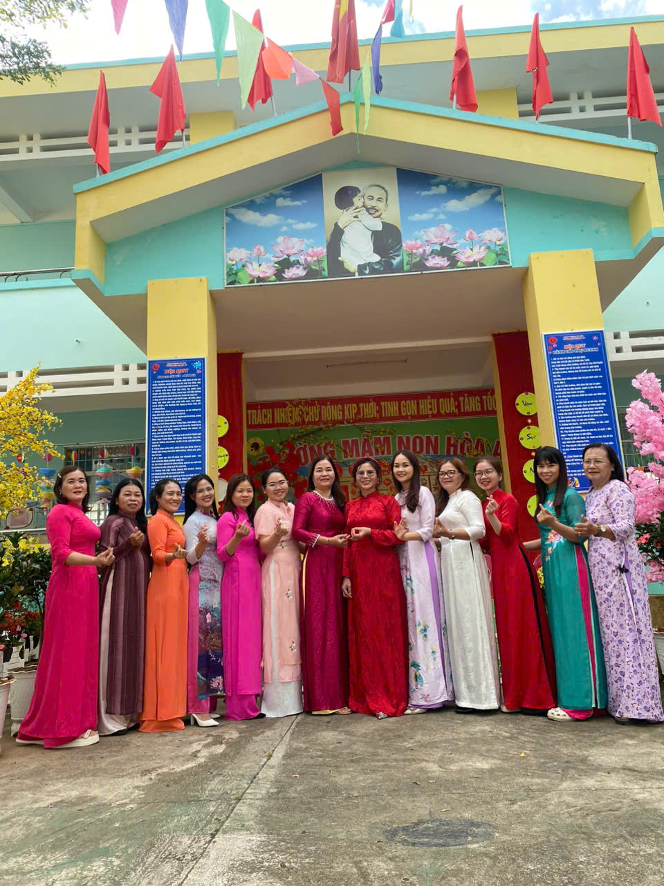 Trường MN Hòa chào mừng kỷ niệm 116 năm Ngày Quốc tế Phụ nữ (08/3/1910 – 08/3/2026) và 1986 năm Khởi nghĩa Hai Bà Trưng, hưởng ứng “Tuần lễ Áo dài”